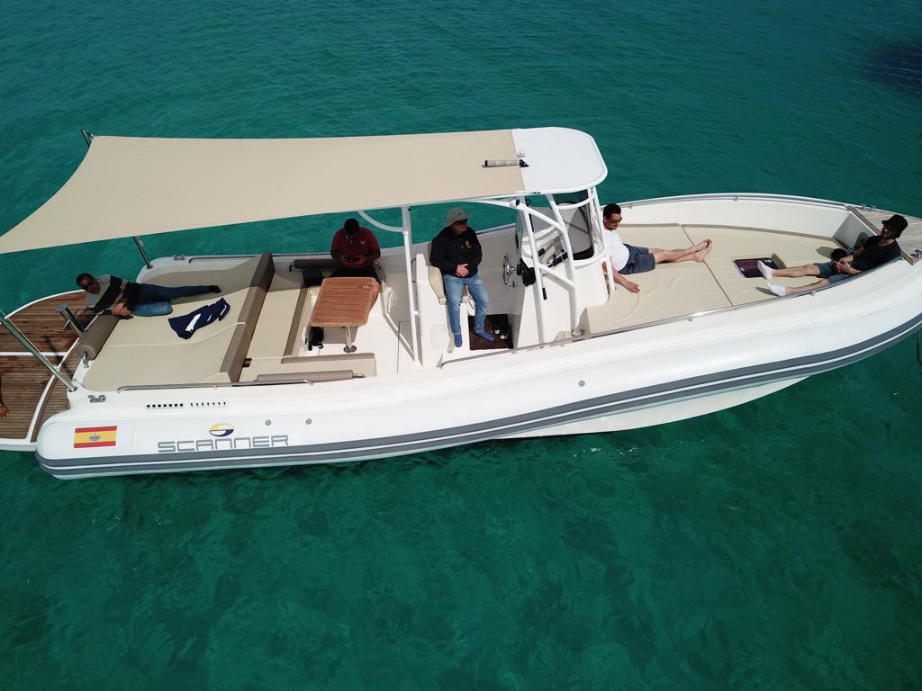 Experience an exciting day charter aboard a practical 12m RIB (Rigid Inflatable Boat) scanner. This boat packs a punch with a powerful engine, ensuring a thrilling ride. The spacious deck is great for sunbathing or enjoying wide views. With a focus on comfort and safety, it provides modern amenities and comfortable seating. The RIB scanner offers a smooth and agile journey, making it a practical choice for those who want both excitement and ease on the water. Choose this straightforward yet impressive option for a memorable day out at sea.